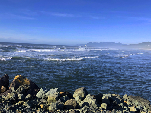 We come here in the mornings, on the weekdays, when we stay at our son's house in Rockaway Beach. We love to go up on that little hill over by the jetty and just inhale that clean salt air.