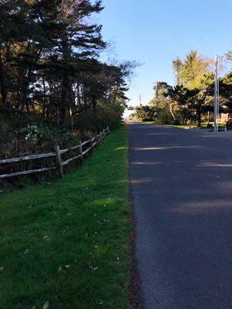 Looking west along Pacific Lane. The beach is down at the end. There is not much traffic on this road. It's a half-mile south from Laneda Ave, which is the main road through downtown Manzanita.